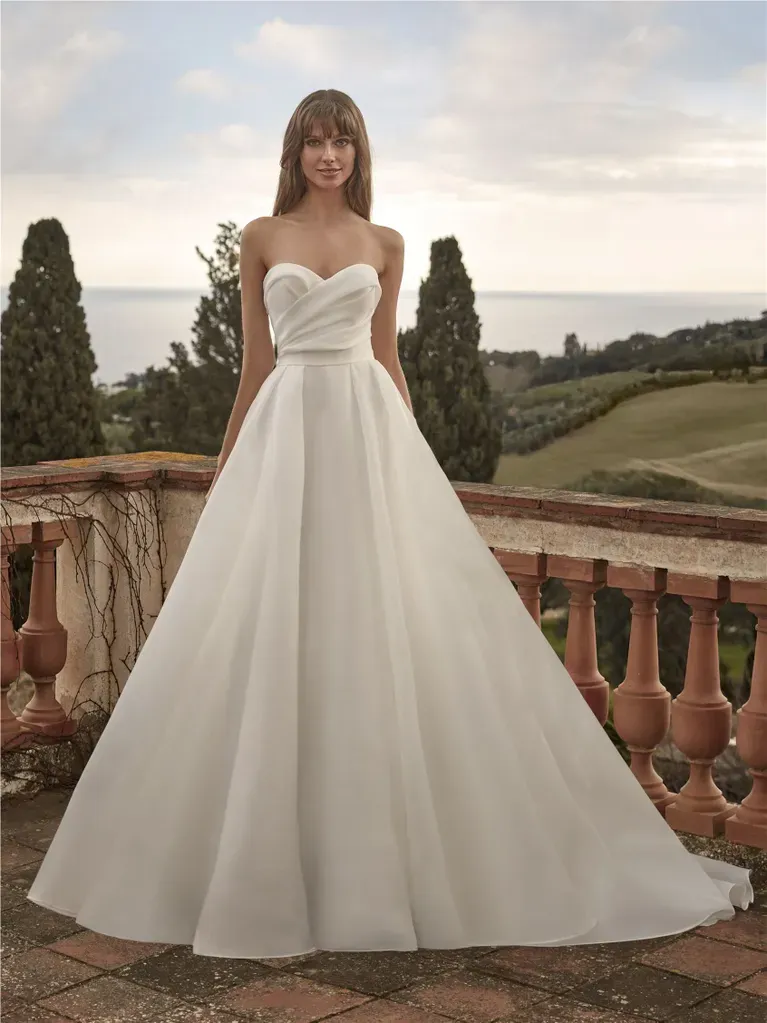Cette coupe flatte toutes les morphologies et l’organza garantit une élégance structurée mais légère ,idéale pour un mariage chic ou féérique.