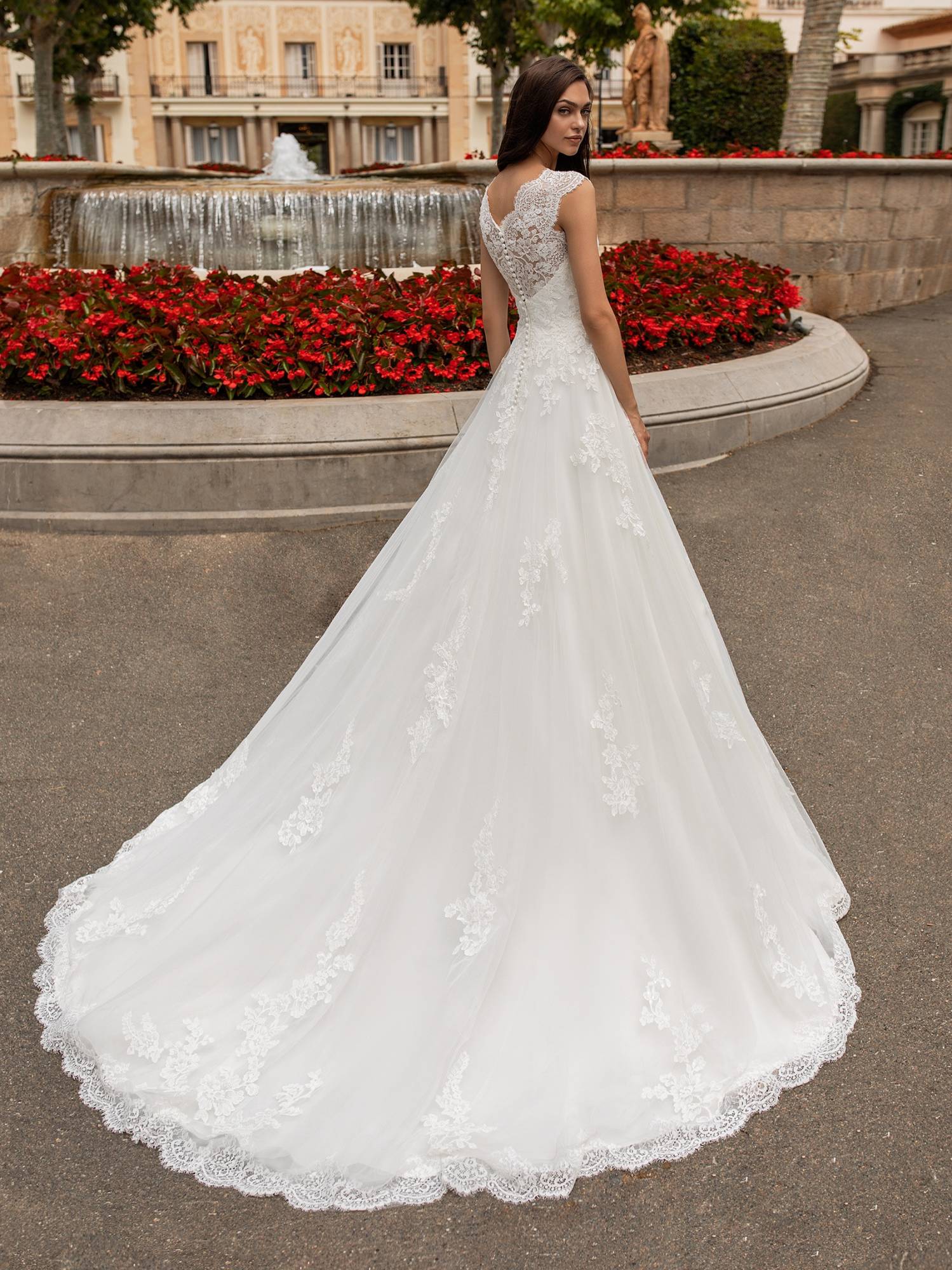 La robe de mariée référence Vita pour votre mariage princesse à volume de la marque Pronovias, ce modèle est disponible dans notre boutique show-room de créateurs sur Marseille, cette robe de mariage Pronovias est destinée à un mariage princier et plus traditionnel, composée de mariée est composé entièrement de dentelle et applications de guipure perlées.