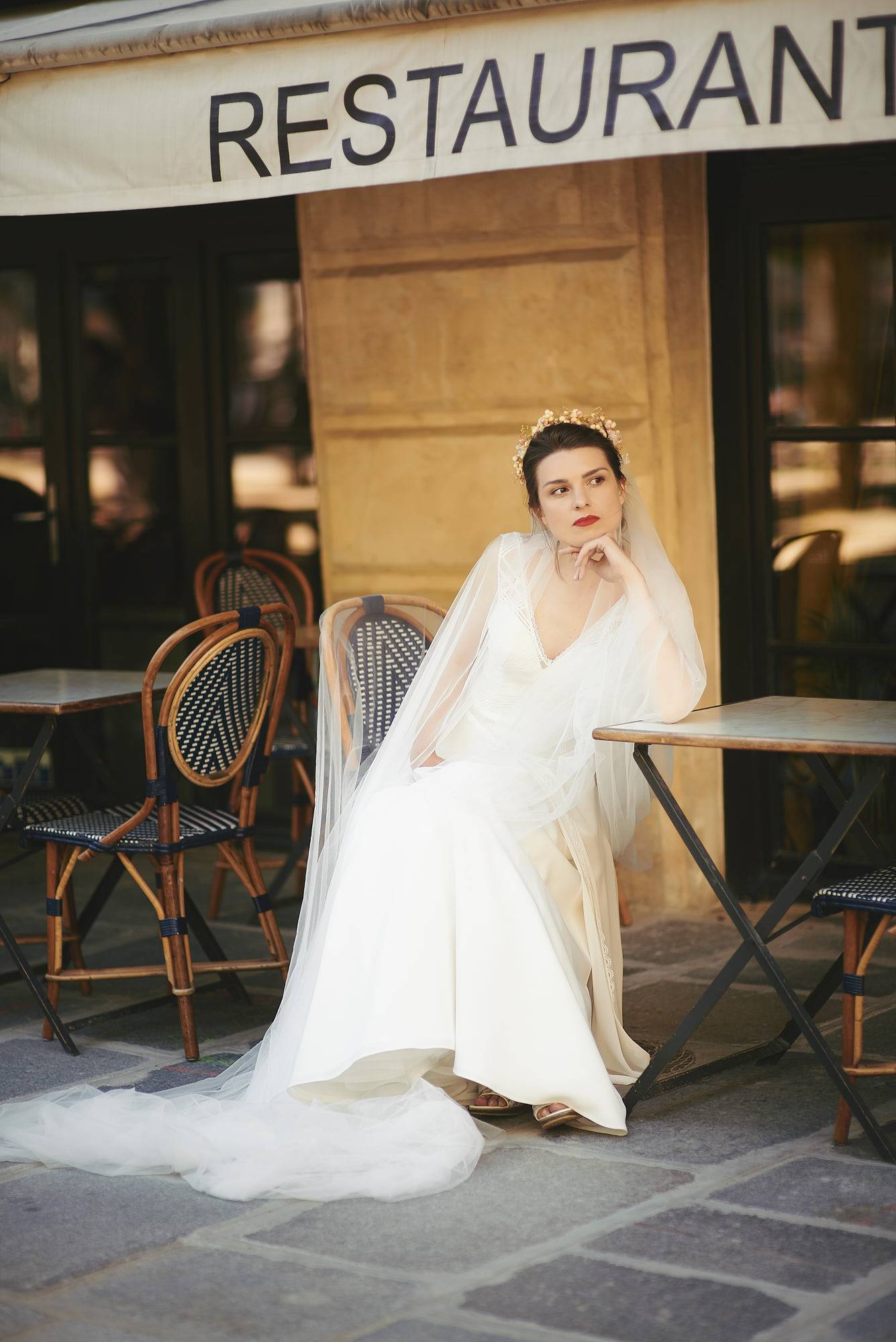 Robe de mariée fluide et légère de la marque du créateur Cymbeline Paris la robe de mariée référence Iwen est disponible dans notre show-room sur Marseille spécialisé dans les mariages bohème chic.