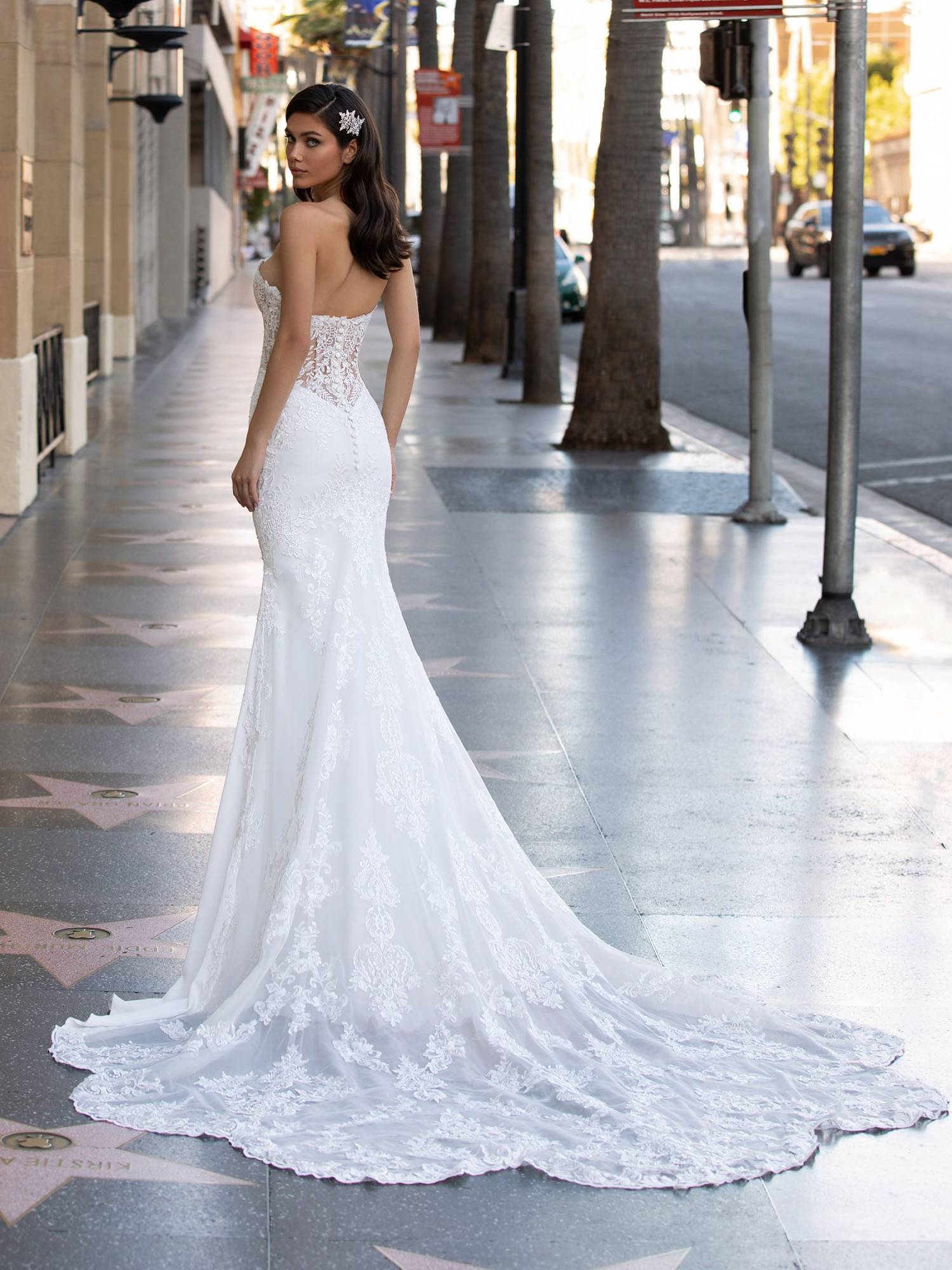 C'est en plein coeur de Barcelone, la marque Pronovias présente sa nouvelle collection 2021 inspirée des tapis rouge et des icônes Hollywoodiennes. Les robes sirènes et les coupe près du corps dans un style romantique glamour sont inspirées de la haute couture italienne.