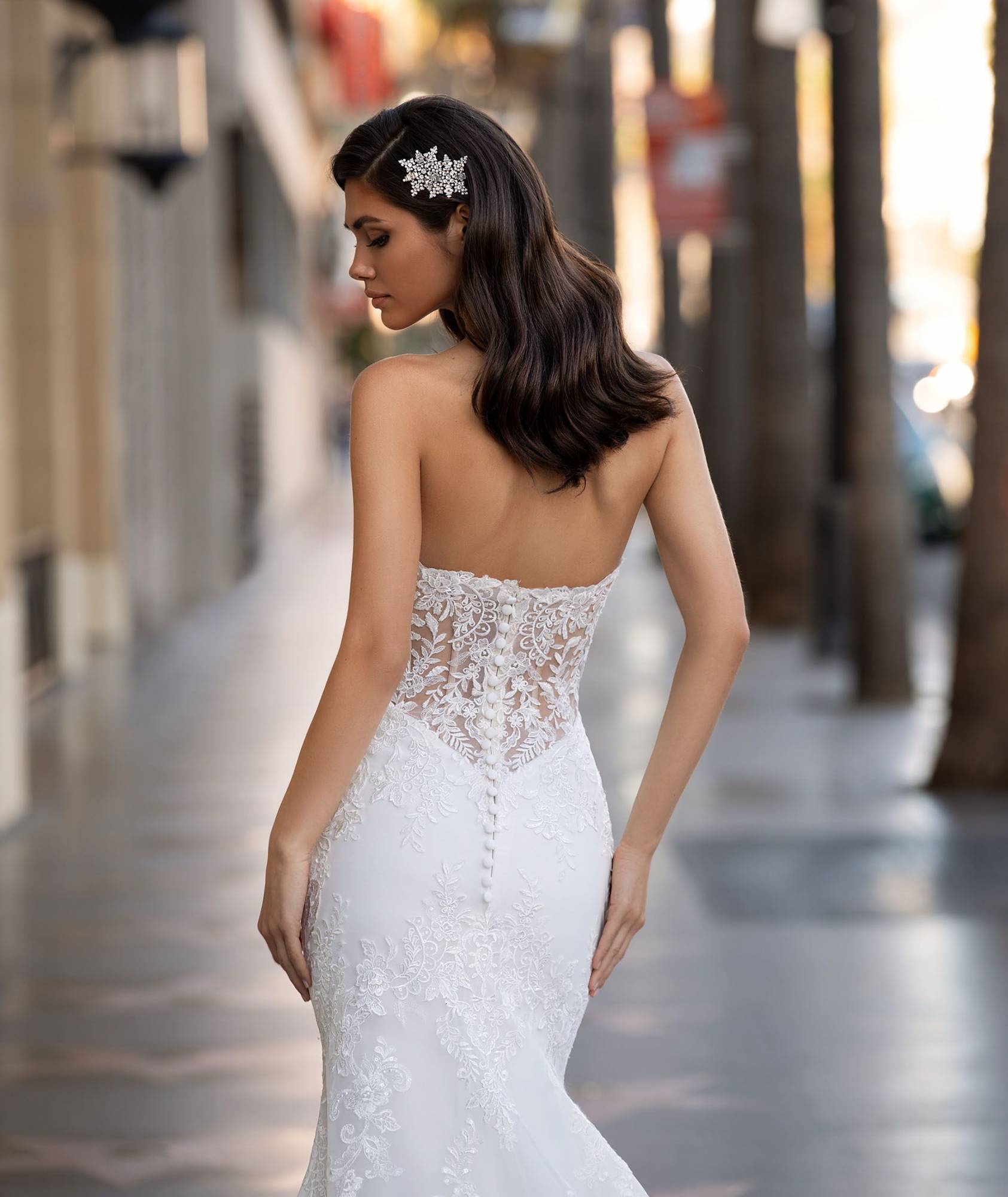 Nous vous présentons un nos coup de cœur dans notre boutique Soniab Marseille en centre vile de la collection 2021 du créateur Pronovias c'est le modèle MONROE en forme sirène manches longues.