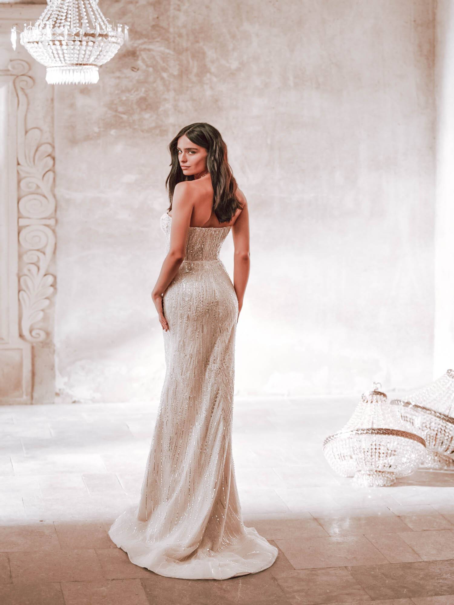 robe du célèbre créateur Lillian West s’inscrit dans une ambiance de style