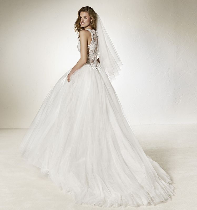 Cette superbe robe de mariée Princesse à jupe vaporeuse de la marque Pronovias avec un très joli bustier dentelle de calais. Pronovias chez Soniab Marseille une variété et un choix incroyable sur Marseille !