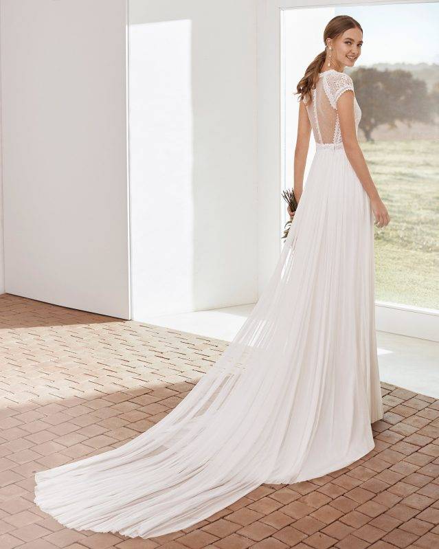 La finesse des robes de mariée de la créatrice Rosa Clara, les hauts chantilly finement perlés, des jupes princesse dans un beau tulle de soie, des robes sirènes en dentelle chantilly glamour chic aux lignes parfaites, des robes élégantes en crêpe Georgette dos nu, des robes de mariée bohème vintage en Mousseline de soie.