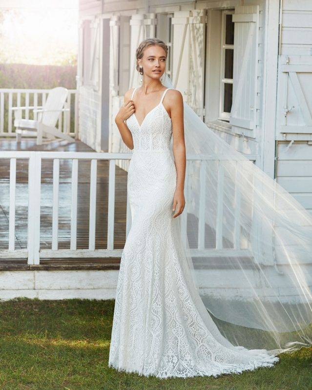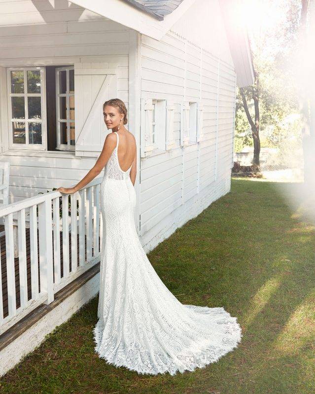 Cette robe de mariée de la créatrice Rosa Clara de forme fluide et aérienne, s'inscrit dans un esprit couture sobre et épuré fidèle à la créatrice Espagnole de Barcelone. Cette robe de mariée couture en dentelle raffinée et élégante, à la fois, cette robe Soniab se distingue par sa coupe parfaitement ajustée sur la future mariée qui sera mise en valeur par ce côté glamour élégant.