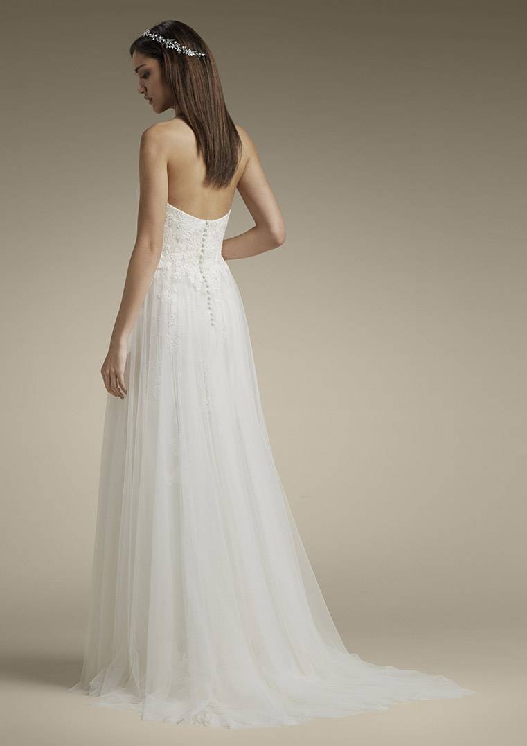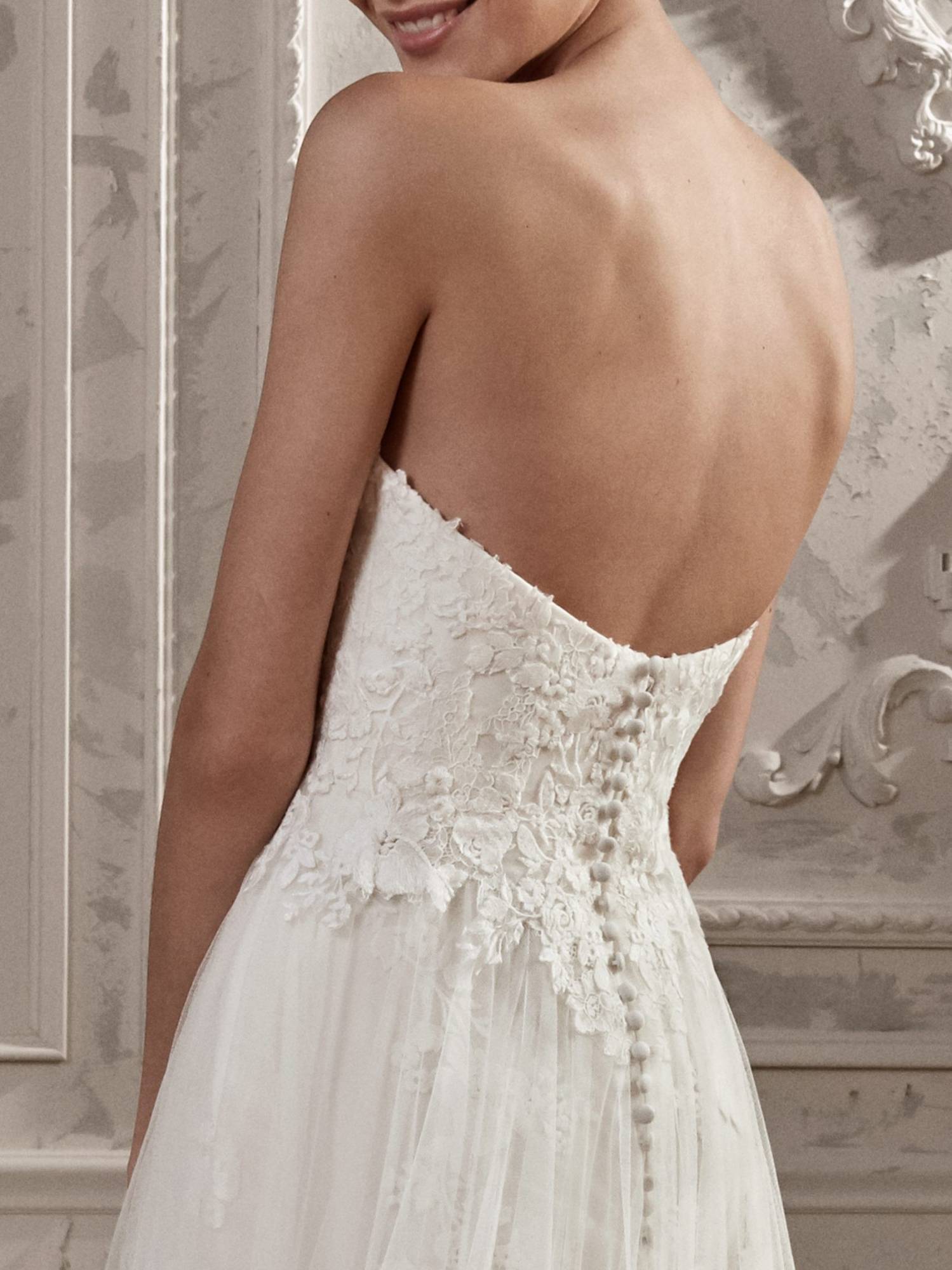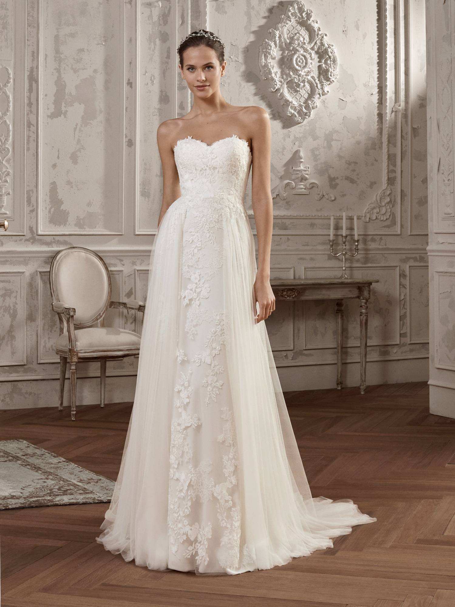 Cette robe de mariée San Patrick by Pronovias référence Almagro est de forme volumineuse princesse romantique avec une belle traîne. Le haut de cette robe San Patrick est composé d'un beau bustier décolleté coeur, la jupe de cette robe de mariée est fluide, cette robe du créateur Pronovias s’inscrit dans une ambiance de style bohème chic pour un mariage en Provence .