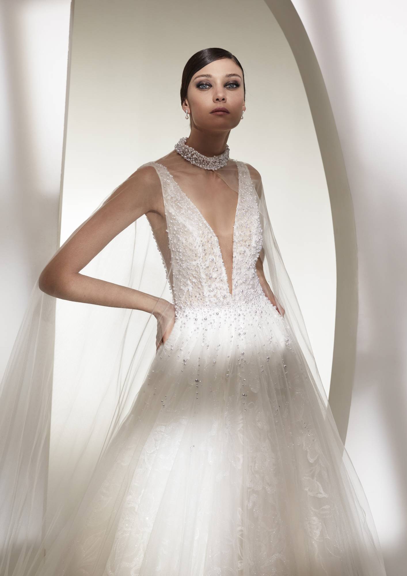 La robe de mariée Aéro de la nouvelle collection Nicole Milano Couture est disponible dans notre showroom de robes de mariage de créateurs, SoniaB, situé au centre de Marseille. Cette robe élégante offre un haut magnifique en dentelle perlée, mettant en valeur un décolleté séduisant et un dos en V.