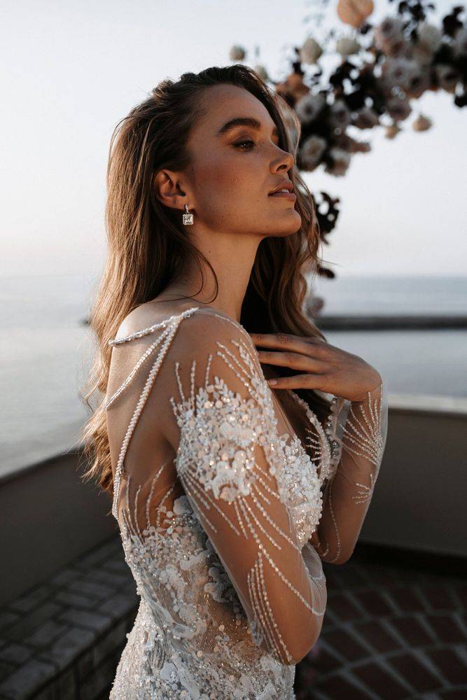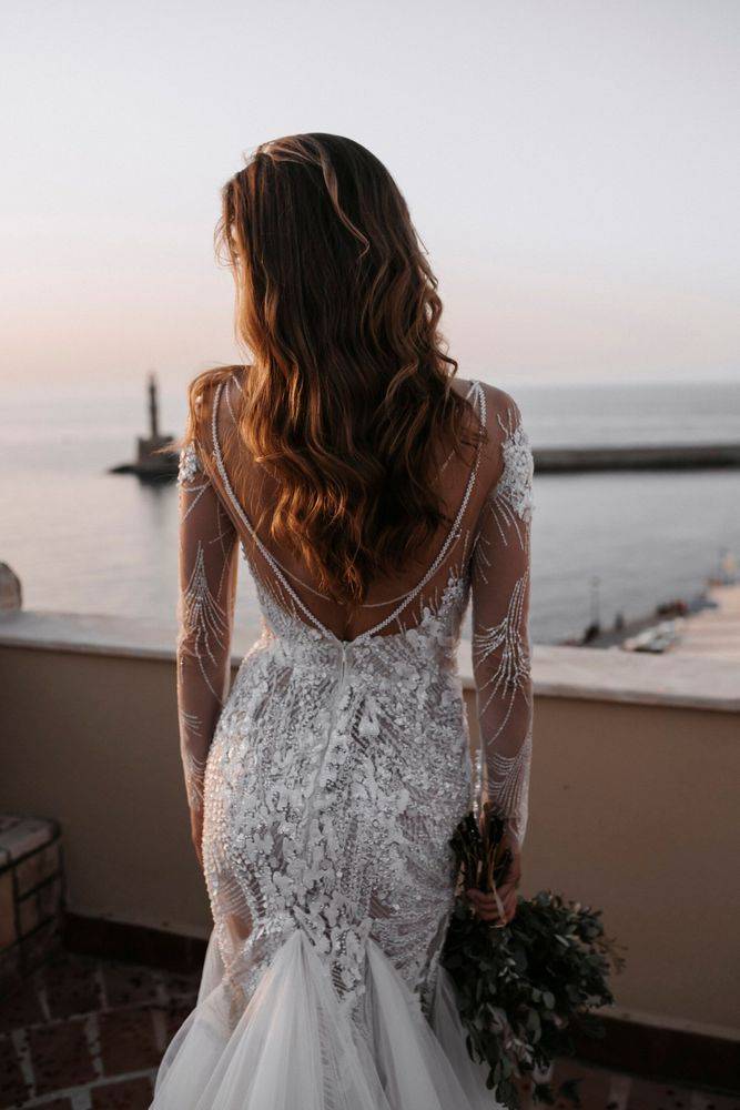 Robe de Mariée spectaculaire Tali de la nouvelle collection Milla Nova disponible dans notre showroom de créateurs Soniab Marseille. Cette merveille de robe Tali est faite pour vous ! Création unique signée Milla Nova présente un dos nu incroyable suivi d’une magnifique traine aérienne en tulle de soie et pierreries , votre arrivée parmi vos invités deviendra inoubliable ! Cette robe de mariée suivra les courbes et le buste de la mariée par sa forme sirène ajustée. Cette robe mariée en dentelle transparente perlée Milla Nova est disponible dans notre concept store pour votre essayage .
