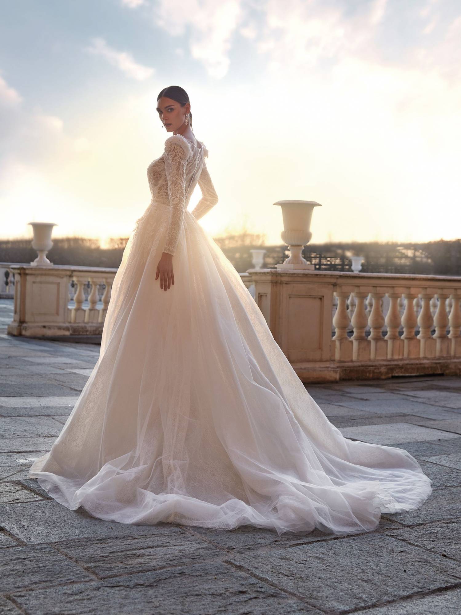 Soniab créateurs ventes de robes pour mariées modernes et exigeantes sur Marseille boutique show room concept store de grandes marques, spécialisée multi marques sur Marseille idéalement situé car entre le département du Var et des villes d eToulon et Vaucluse et Avignon . Le modèle Pronovias présenté est parfait pour une cérémonie religieuse pour les manches longues qui couvrent les bras de la mariée, pour la sur jupe qui fera son effet quand vous rentrez dans le lieu de culte en question, pour finir vous pourrez danser aisément quand vous enlèverez la sur jupe pour vous amusez ...